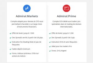 Les comptes Admiral Prime et Admiral MT5 conviennent mieux aux vétérans. Il n’est, en effet, pas donné à tout le monde d’entamer ses activités avec un dépôt d’au moins 1 000 Euros. C’est pour cela qu’on conseille aux traders en herbe qui cherchent encore leurs repaires de commencer à trader en utilisant un compte Admiral Markets basique qui leur permettra de commencer avec un dépôt de seulement 200 Euros.