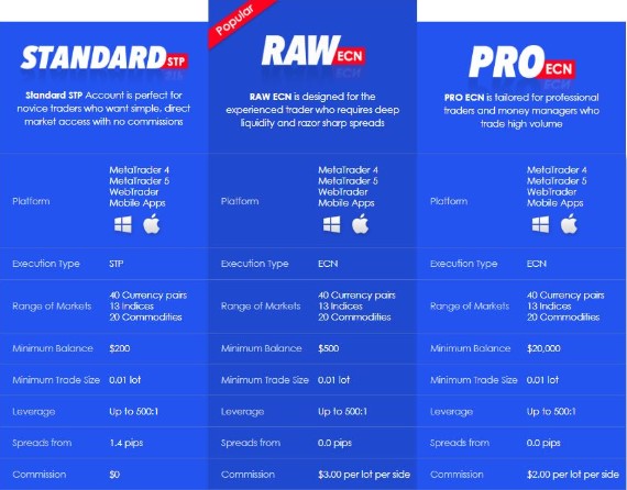 Dans le cas de Vantage FX, il faut noter que les plateformes que vous allez utiliser n’affecteront pas les frais que vous allez devoir payer. Par conséquent, votre choix se basera uniquement sur le côté pratique et intuitif. Cela dit, lors de votre inscription, le broker vous proposera de choisir un compte parmi trois. C’est essentiellement de là que vous allez trouver une différence substantielle entre les tarifs.