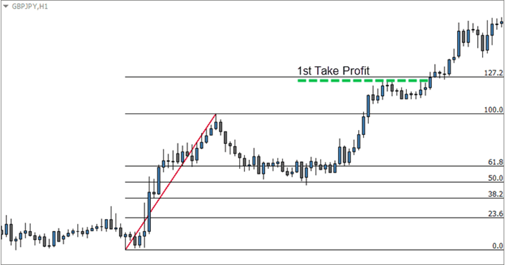 En dehors des niveaux de retracement il existe les niveaux d’extensions que sont 3.82%, 61.8%, 100%, 128% et 161%.